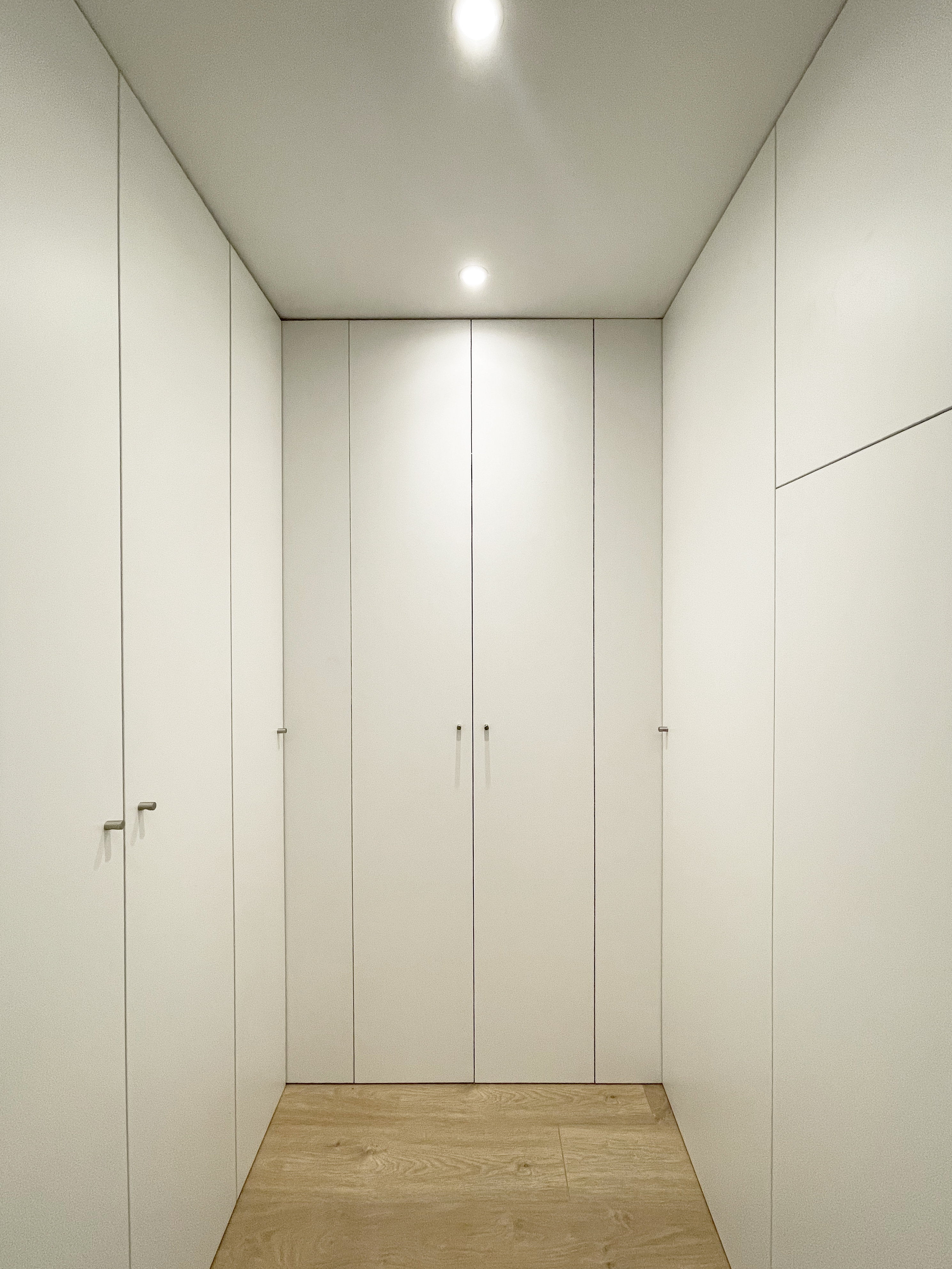 Regarding the limited budget available, we decided to maintain the location of the kitchen and bathroom, renewing them completely. Before our intervention, the apartment had a decayed image and very dark due to the excessive division of the spaces. We simplified the distribution to obtain larger and brighter spaces.