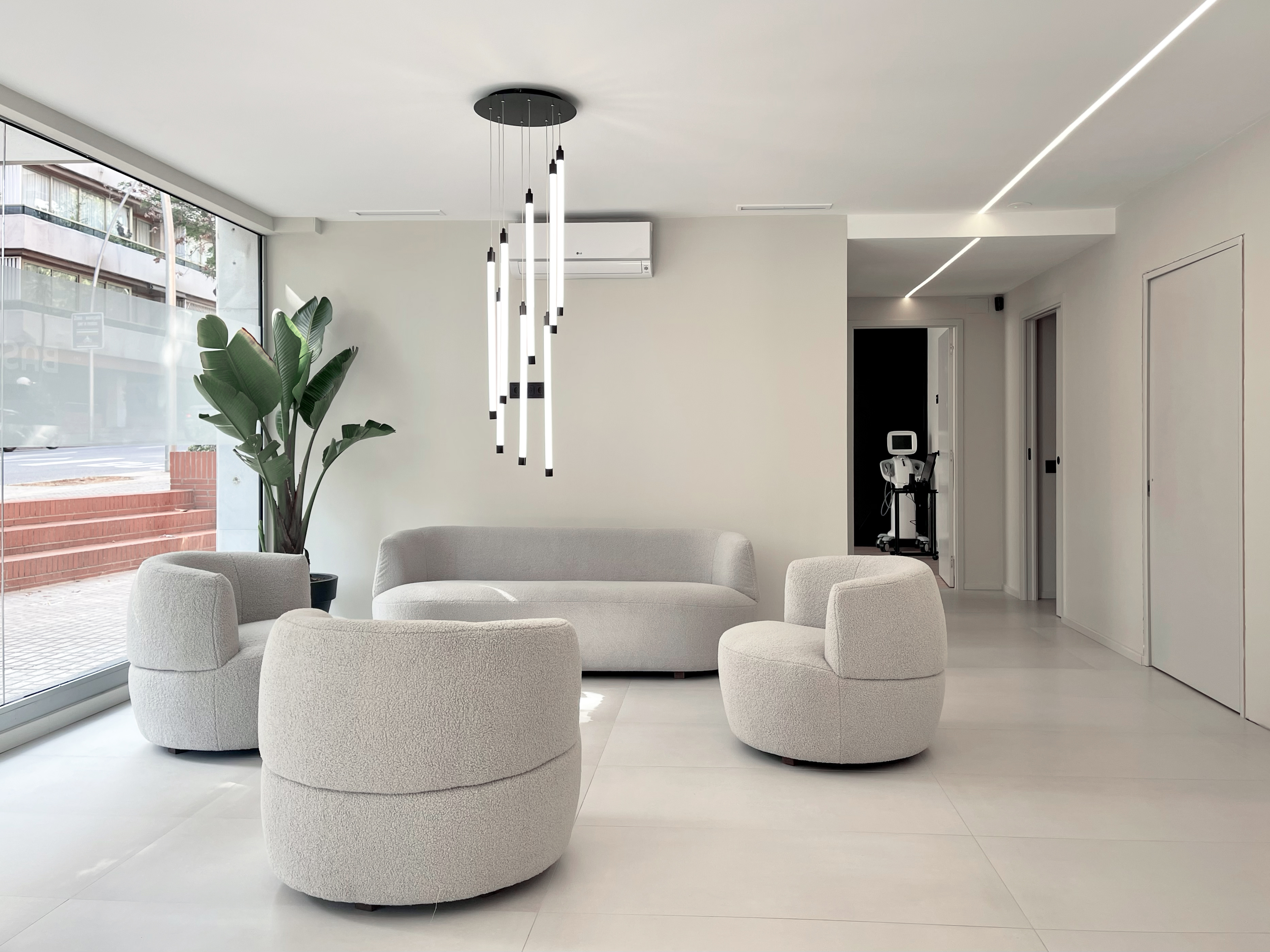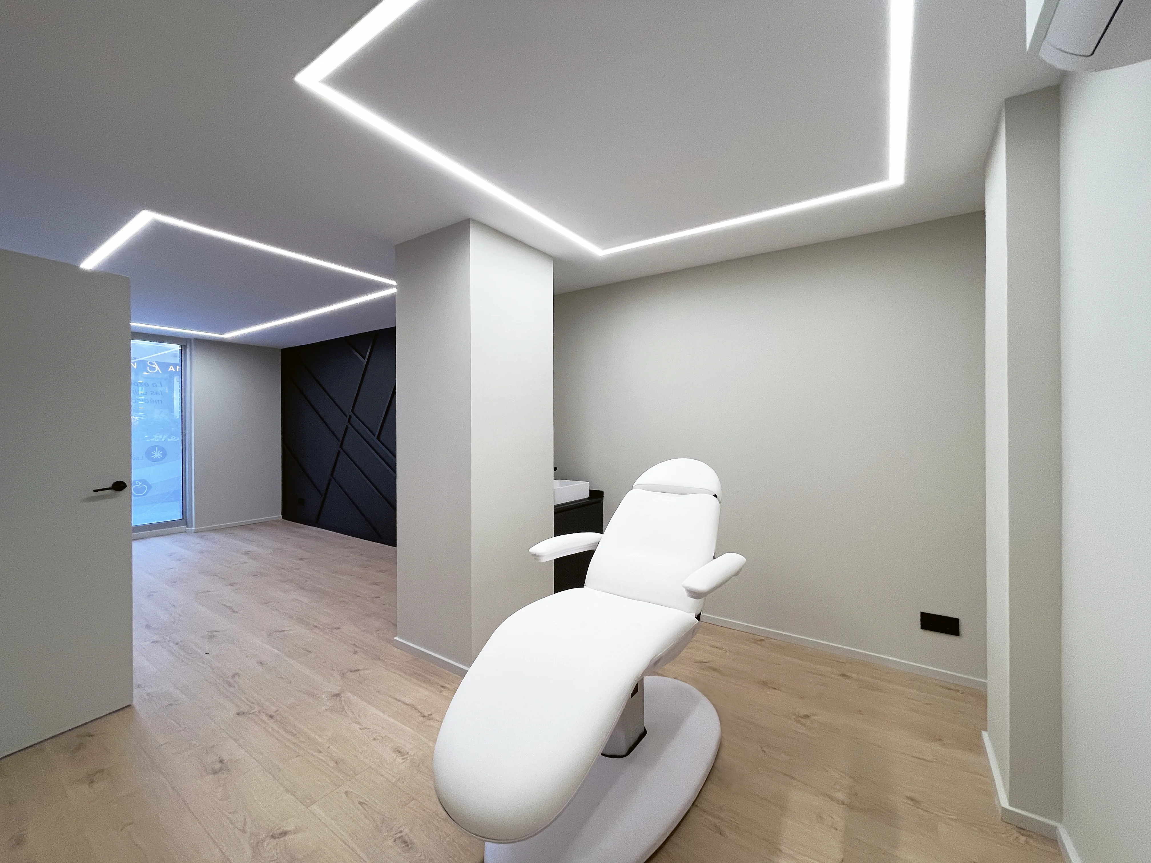 Located on a bustling street in the upscale area of Barcelona, this 300 sqm aesthetic medicine clinic has been meticulously designed to captivate the attention of passersby and the abundant traffic.