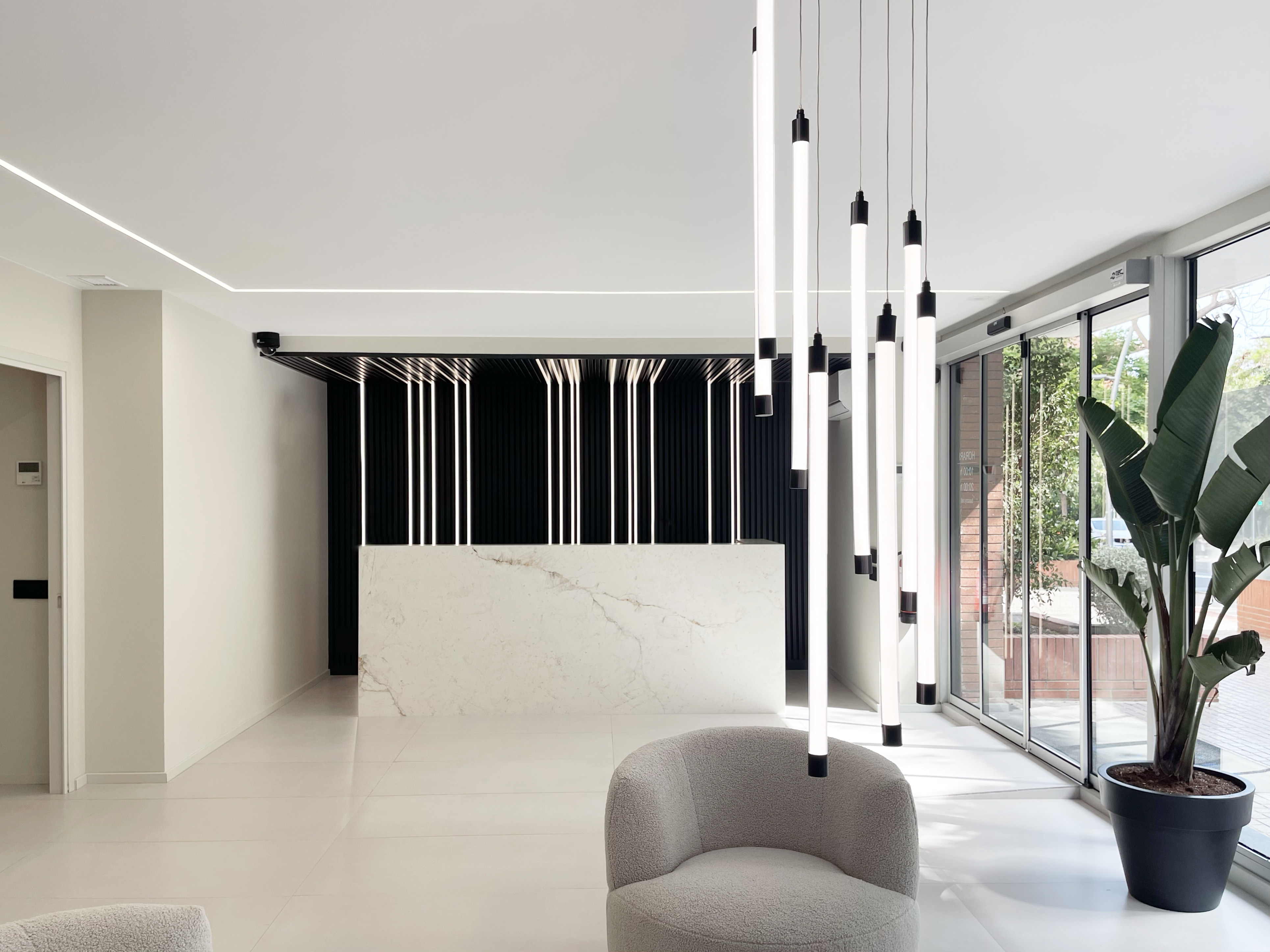The goal for this extensive renovation was to craft a luminous, contemporary, and minimalist space that epitomizes the elegance and refinement of aesthetic medicine.